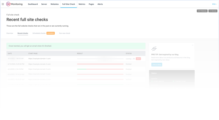 With 360 Monitoring, you can ensure optimal performance for your visitors, avoid downtime, and proactively address any potential issues.